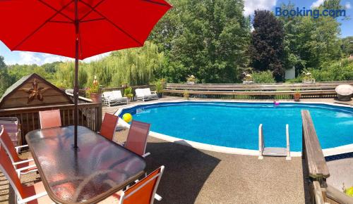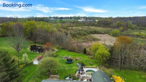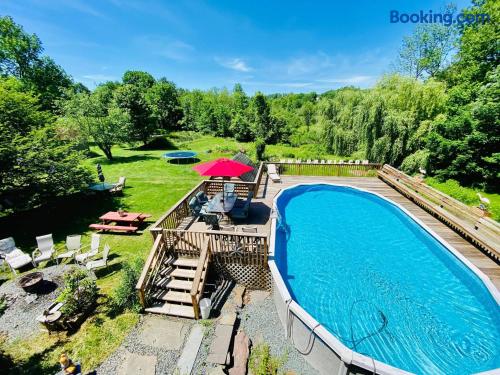 Welcome to The Escape, located minutes away from the historic Honesdale birthplace of the American railroad. Enjoy the communal pool, fire pit, and spacious backyard in this peaceful setting. With the Lackawaxen & Delaware Rivers nearby, you can experience incredible fishing. Just a short drive away you can find Lake Wallenpaupack, Promised Land State Park, and beautiful waterfalls. Downtown Main Street has unique shops, awesome diners, fine dining, and 3 local breweries.