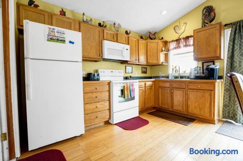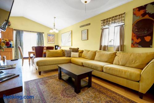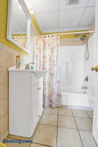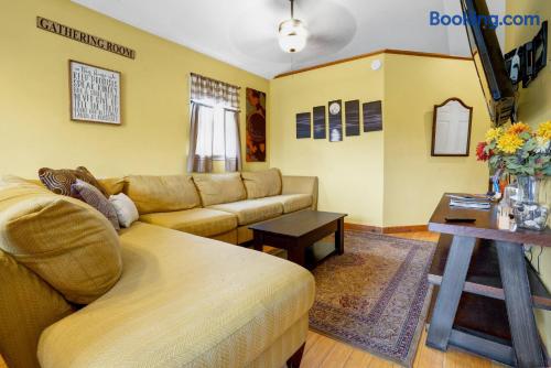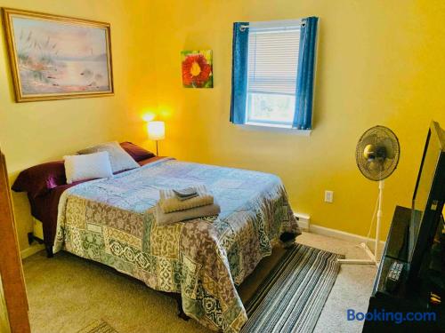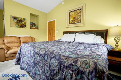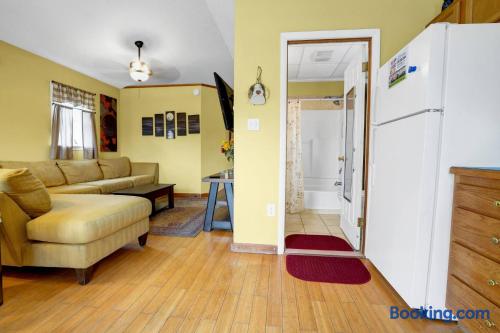 This beautiful 2nd floor private apartment is complete with its own large deck that overlooks the backyard. Enjoy a spacious open floorplan in the kitchen and living room area. The master bedroom has a king size bed, while the guest bedroom offers a full size bed. With its large deck and spacious bedrooms, this apartment is perfect for anyone looking for a comfortable getaway. This is the perfect place to relax and enjoy life.