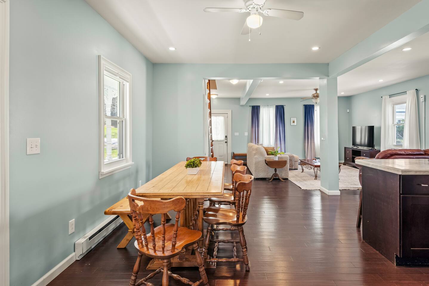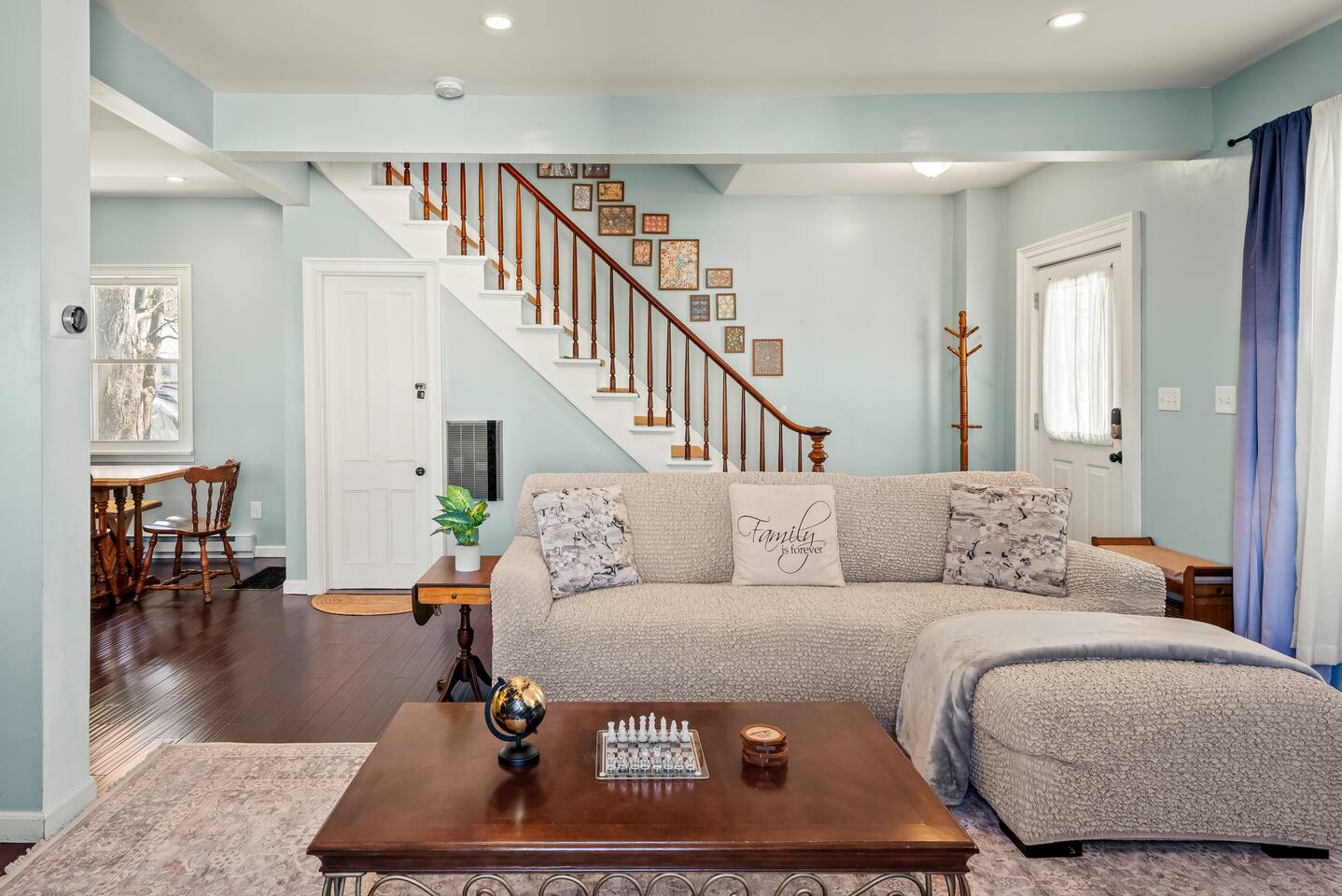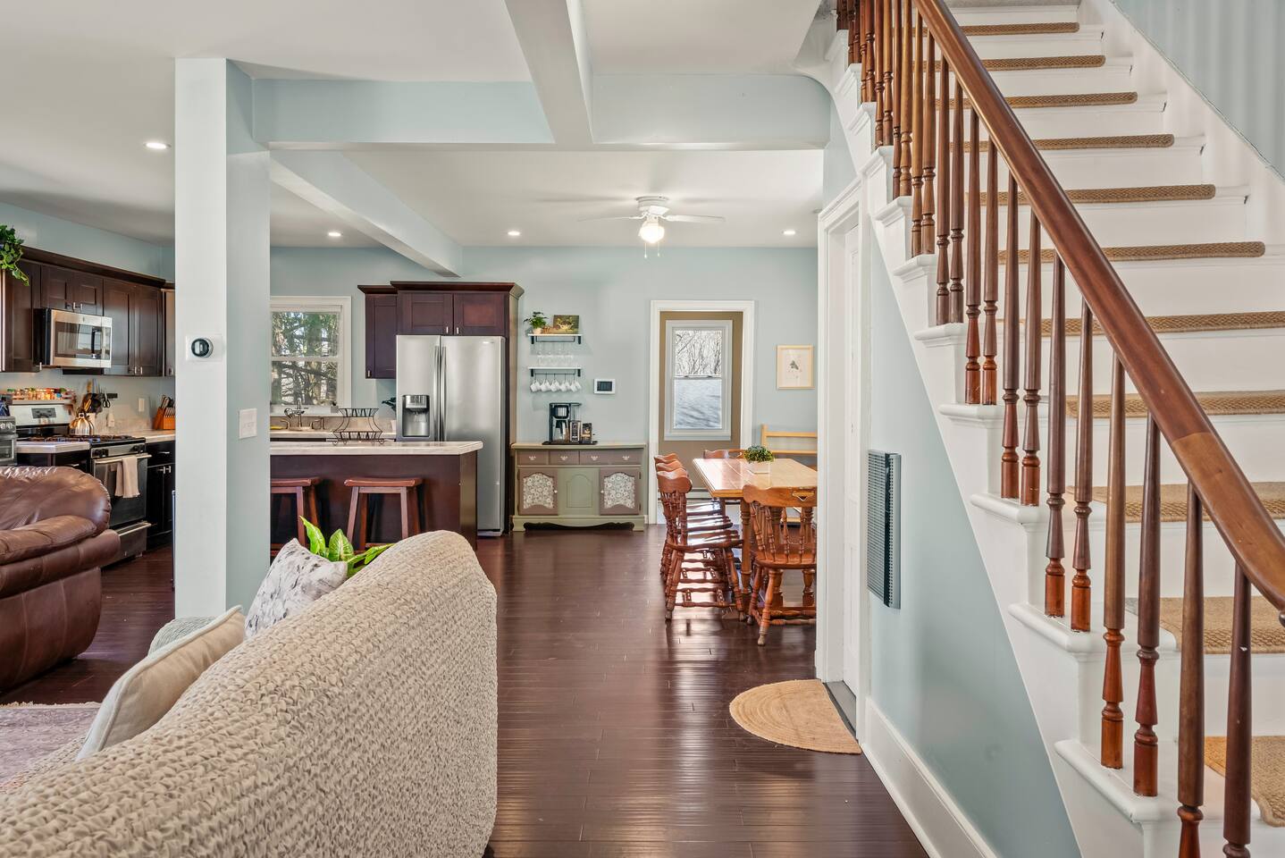 Experience Honesdale in Comfort & Style Your Home Away From Home – Packed with Perks ✔️ Hassle-Free Entry: Self check-in with smart lock for a smooth arrival. ✔️ 50" Smart TV: Movie nights come alive with our spacious living room and a crisp 50-inch screen. ✔️ Cozy Bedrooms for Sweet Dreams: 🛏️ Bedroom 1: Queen bed + 43" Fire TV 🛏️ Bedroom 2: Queen bed 🛏️ Bedroom 3: Full bed ✔️ Chef-Ready Kitchen: Whip up anything from pancakes to pasta in a fully equipped, modern kitchen with sleek stainless steel touches. ✔️ Dine in Style: Enjoy meals around a warm, inviting dining table that brings everyone together. ✔️ Fresh & Clean: Newly renovated full bathroom with stylish finishes. ✔️ Laundry Onsite: Washer and dryer on the main level for your convenience. ✔️ Wraparound Porch Vibes: Perfect for your morning coffee or evening wind-down. ✔️ Spacious Backyard: Room to relax, play, and breathe easy in your own outdoor escape. ✔️ Climate Control: Stay comfortable with central heating and cooling year-round 🌡️. Recharge in Peaceful Bedrooms Unplug and rest easy in thoughtfully designed sleeping spaces with soft linens and peaceful vibes throughout. Location, Location, Location 🌟 Just 0.5 miles to downtown Honesdale—walk to cafes, shops, and local gems! 🎒 Close to Wayne Highlands schools and kid-friendly spots. 🏞️ A quick drive to lakes, trails, and all the nature you came for. Whether you're here to work, relax, or explore, this home brings all the comfort you need with the small-town charm you’ll fall in love with. Book Now for the Experience You Deserve! Save this listing and share it with friends. It’s the kind of place that feels like home the moment you walk in.