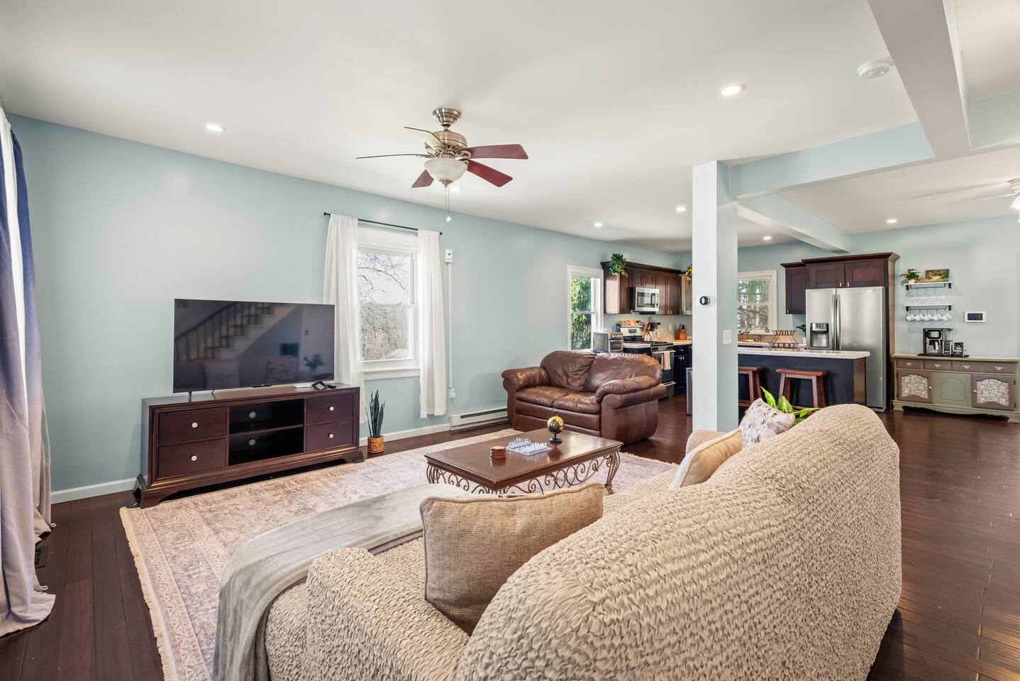 Step into a fully renovated 3-bedroom gem where colonial charm meets modern style. Just 0.5 miles from downtown Honesdale, this stylish retreat is perfect for families, professionals, and weekend explorers. Enjoy designer comforts, a chef’s kitchen, smart TVs, and a spacious yard. It’s more than a stay—it’s your next favorite getaway.
